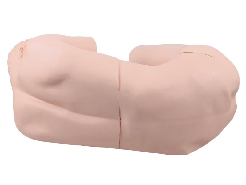 腰椎穿刺仿真標準化病人 功能特點:仿真標準化病人取側臥位,背部與床面垂直,頭向前胸彎曲,雙膝向腹部屈伸,軀干呈弓狀。